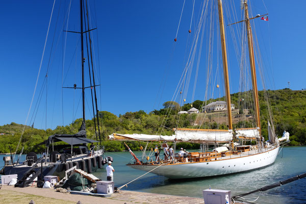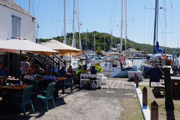 Antigua ist tatsächlich sehr britisch geprägt. Das seglerische und touristische Highlight ist hier der English Harbour, der früher Lord Nelson als Karibikstützpunkt gedient hat. English Harbour ist ein "hurrican hole", die Bucht ist zwar nur schmal, geht aber recht weit verzweigt ins Land hinein und ist von Mangroven umsäumt. Diese verwurzeln sehr tief im Brackwasser und sind deshalb auch im Notfall zum Anbinden von Schiffen zu gebrauchen. Heute ist der English Harbour ein Freilichtmuseum, welches allerdings noch im praktischen Gebrauch ist. Der Hafen bietet an der Mole Platz für einige Yachten und hat sogar ein neues Superyacht-Dock gebaut. Die teils noch gut erhaltenen und liebevoll gepflegten alten Hafenanlagen inklusive Werkstätten kann man sich ansehen. Gleichzeitig gibt es ein paar sehr nette und sehr britisch geprägte Läden (z. B. die Bakery und der Segelmacher) und Bars.