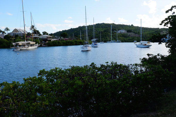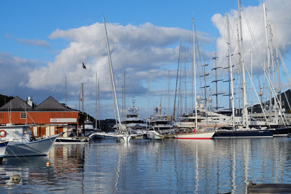 Nachdem wir uns die Situation im English Harbour angesehen haben, beschließen wir, diesmal doch lieber die größere Bucht Falmouth Harbour "gleich um die Ecke" anzulaufen.