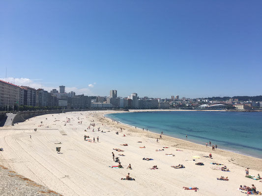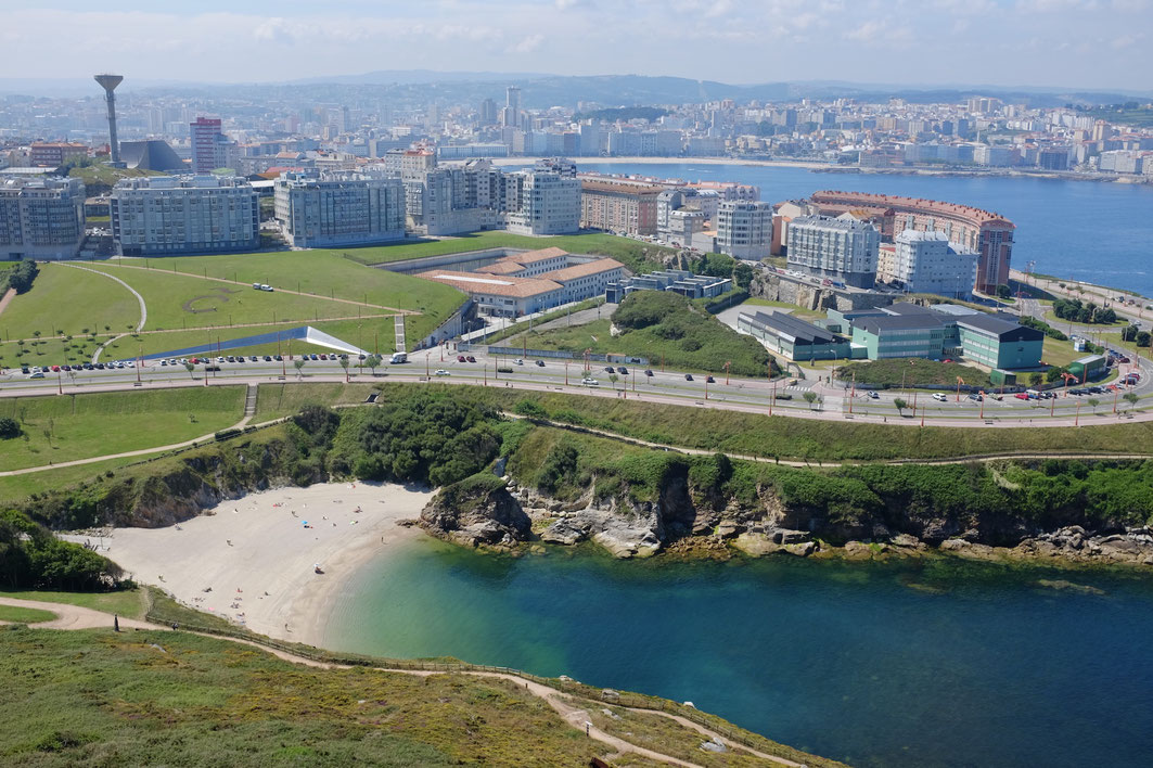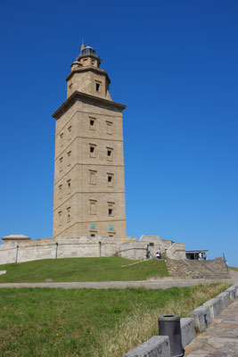 Kaum zu glauben, aber bei all dem Hin und Her haben wir bislang die touristische Seite von A Coruña sträflich vernachlässigt. Diesmal klappt’s: wir laufen die paar Kilometer um die Küstenpromenade zum Weltkulturerbe Herkulesturm. Dies ist der älteste noch in Betrieb befindliche Leuchtturm der Welt. Er stammt aus der Römerzeit, und die drei Euro für den Eintritt mit Aufstieg lohnen sich. Weiter geht die Runde in Richtung des langen und schönen Stadtstrandes von A Coruña, wo sich offenbar die ersten Touristen eingefunden haben. Der Rückweg durch die Altstadt beendet unseren langen „Auslauf“ und wir widmen den Rest des Tages dem unvermeidlichen Schiffputz.