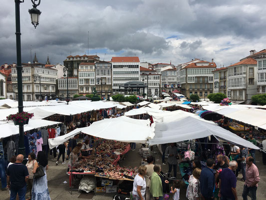 Da der Wetterbericht für das Wochenende stabil Gewitter und Dauerregen prophezeit, suchen wir uns Freitagabend einen Hafen und probieren es mit der Marina Sada. Hier fährt ein Bus nach Betanzos und wir planen einen Landausflug für den Sonntag. Betanzos hat eine Geschichte, die bis in die Zeit der Kelten zurückreicht. Am Sonntag ist zudem noch Markt in der Altstadt, so dass wir sogar noch supergutes Brot kaufen können und den unvermeidlichen Regenschauer bei einer Tortilla und einem Glas Albariño im Restaurant durchziehen lassen.