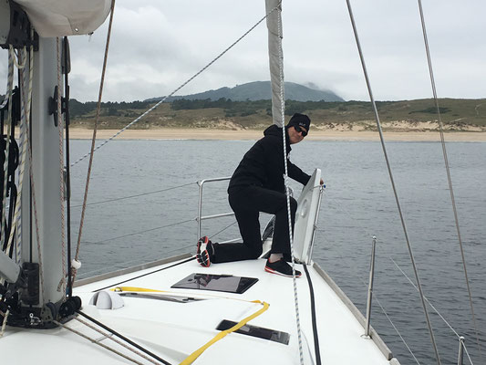 Im Mai fliegen wir frohgemut nach A Coruña, um unser Schiff aus dem Winterlager zu befreien. Was soll man sagen - es erging Entropy wie Schneewittchen: so ein langer Schlaf erfordert anschließend eine gründliche Dusche. Also erstmal den gröbsten Dreck beseitigen, zurück ins Wasser damit und die wichtigen Dinge erledigen: segelfertig werden! Also haben uns die netten galizischen Rigger die kaputte Saling ersetzt und der Segelmacher hat uns geholfen, unser nagelneues Großsegel zu montieren. Derweilen mussten wir feststellen, dass es Ende Mai in Galizien noch ziemlich frisch und regnerisch ist, daher verschieben wir kurzerhand unseren Urlaubstörn in die Rias noch ein wenig.