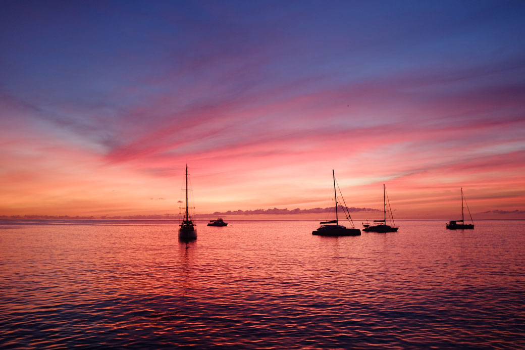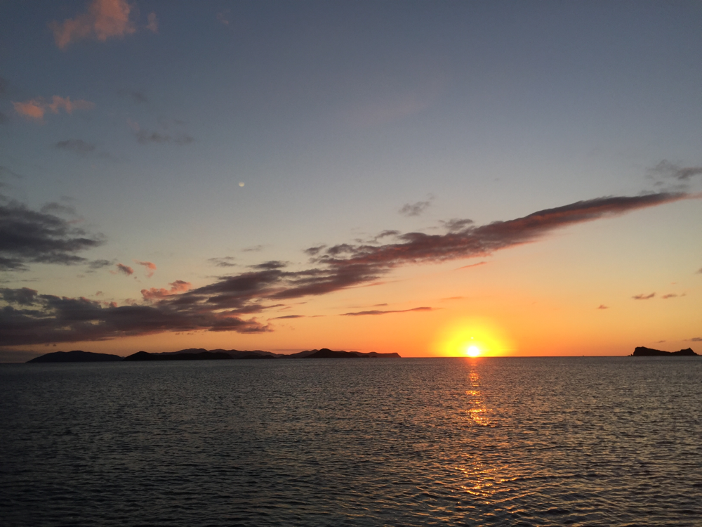 durch die Brücken und ihre festen Öffnungszeiten sehr abgeriegelt. Wir ankern draußen in der Bay, kochen uns was nettes zum Abendessen, baden und fahren gegen 18:30 Uhr mit dem Sonnenuntergang