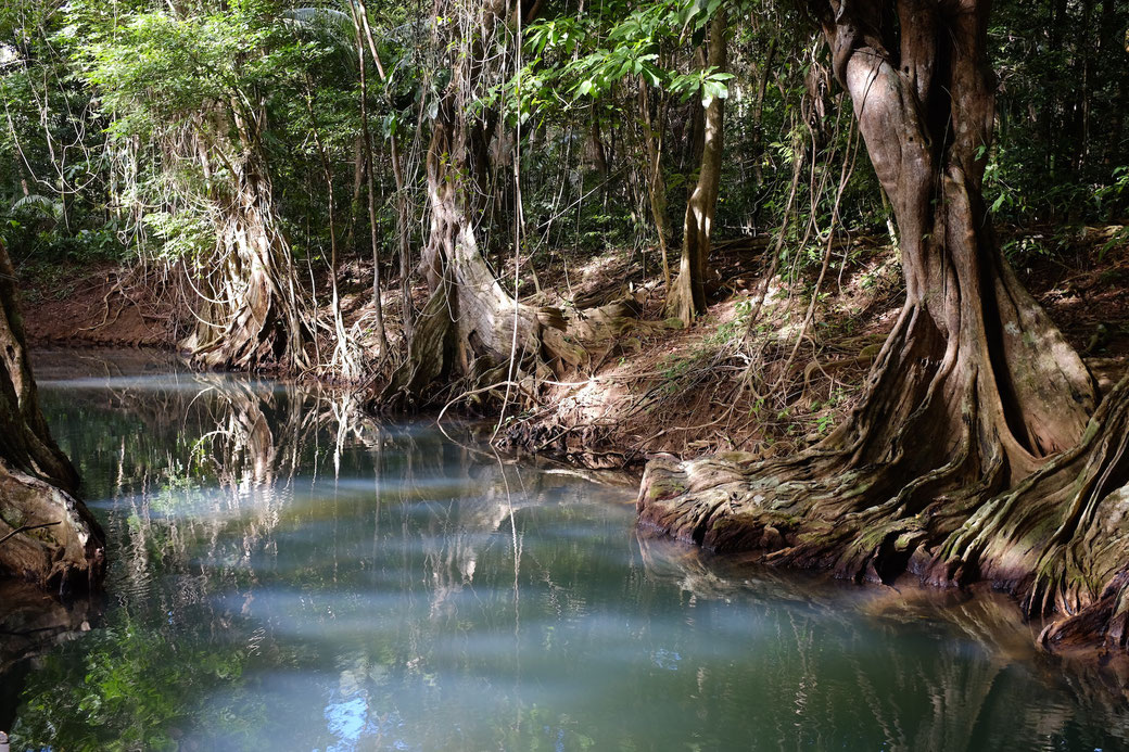 war es sogar noch möglich, mit dem Boot entlang des von Mangroven gesäumten Flusses quer durch die Landzunge zwischen beiden Inselteilen von Süd nach Nord zu fahren. Es gibt einige Straßen die