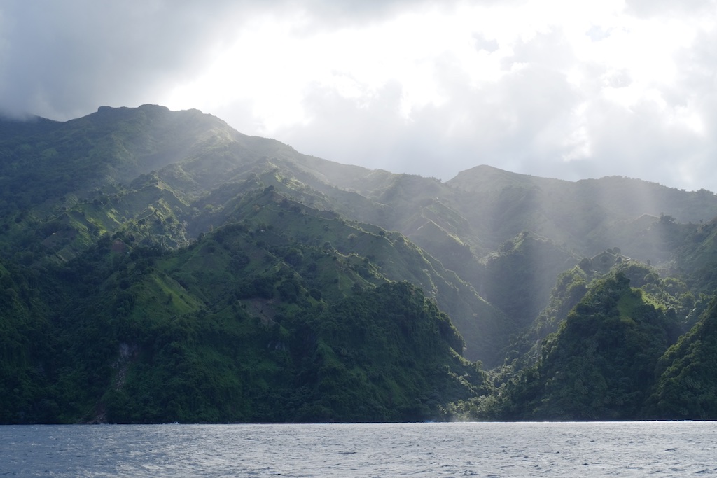 Der Weg von den kleinen Grenadinen nach Norden führt zwingend an St. Vincent vorbei. Dies ist eine der größeren Inseln in der Gegend mit vulkanischem Gebirgsrücken, Regenwald, Wasserfällen, sehr