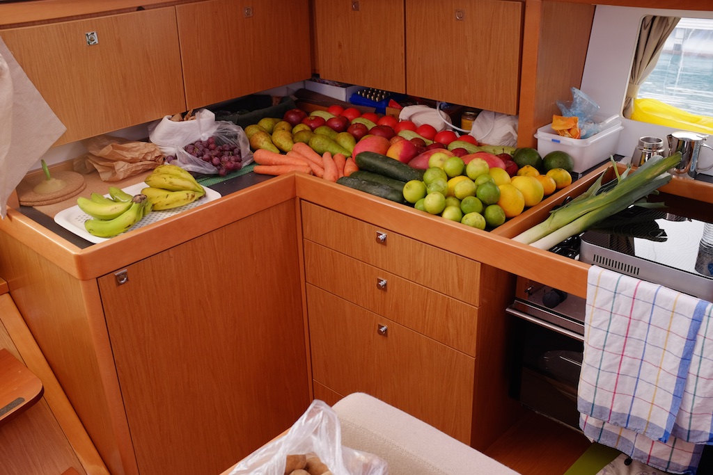 Heute haben wir noch eine Menge Obst und Gemüse eingekauft, die wenig verderblichen Sachen hatten wir schon vorher beschafft und verstaut. Perfektes Timing: nach dem Frühstück kam nach drei