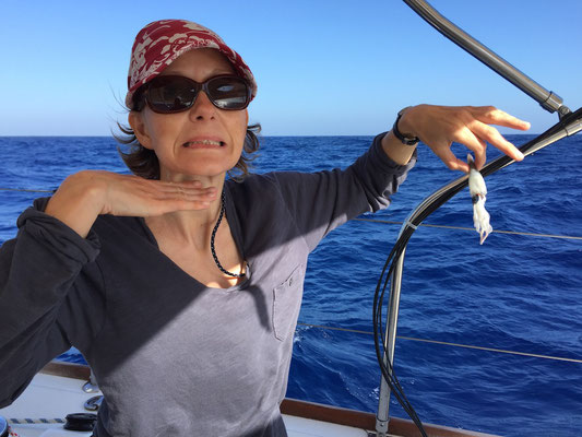 lebendig). Der Atlantik jedoch wartete mit einer anderen Spezies auf: kleine Tintenfische, Sepias. Unter diesen scheint es morbide Exemplare zu geben, die ihr Ableben gern auf einer Yacht